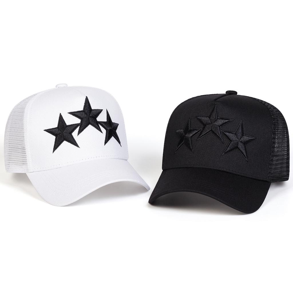 Modische Mütze aus Mesh mit Sternstickerei Outdoor Baumwolle Verstellbare Baseballkappe Freizeit-Sportmützen für Paare Sommer Atmungsaktive Kappen