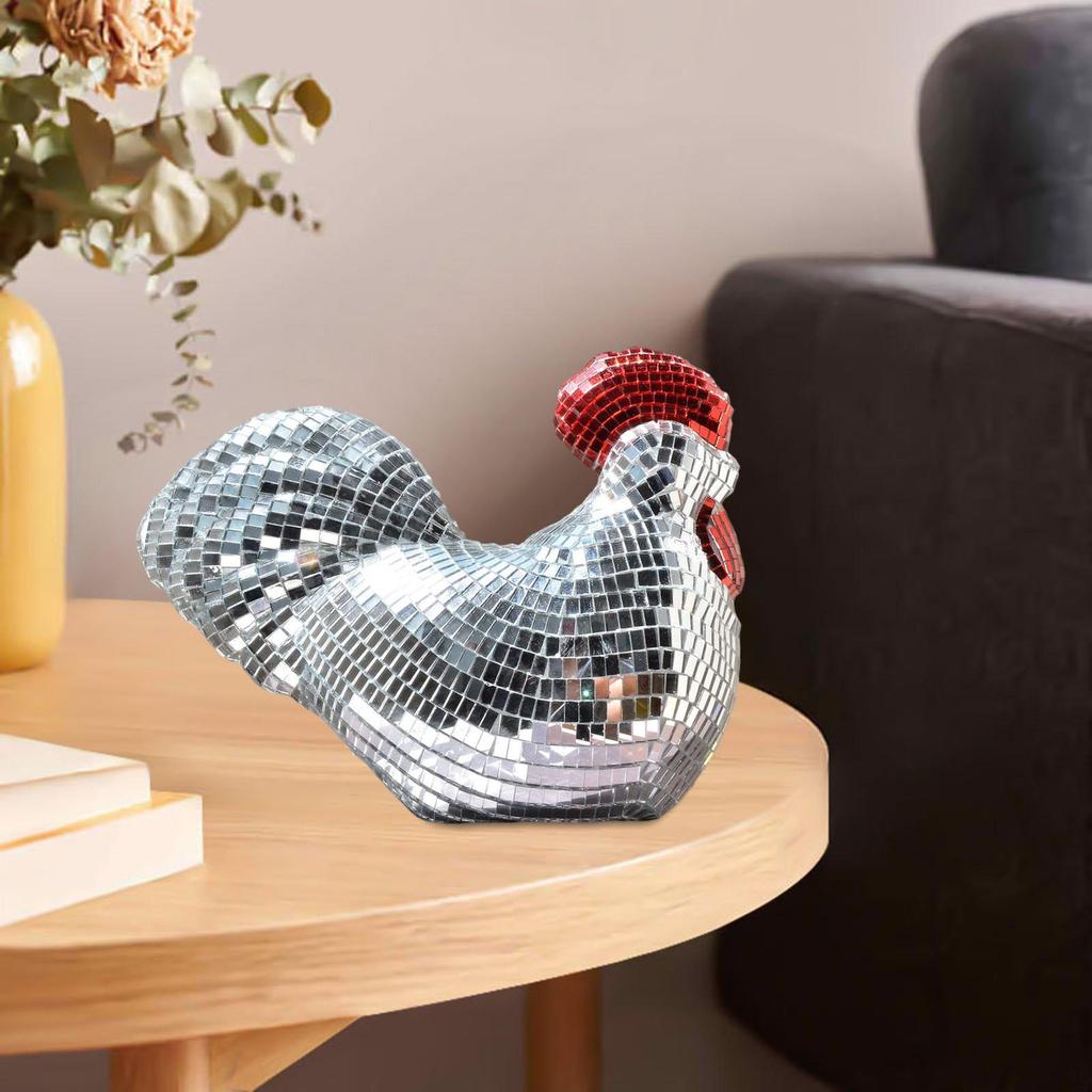 Hühnerfigur Spiegelkugel Skulptur Dekoration Glasverarbeitung Glänzende Oberfläche für Zuhause