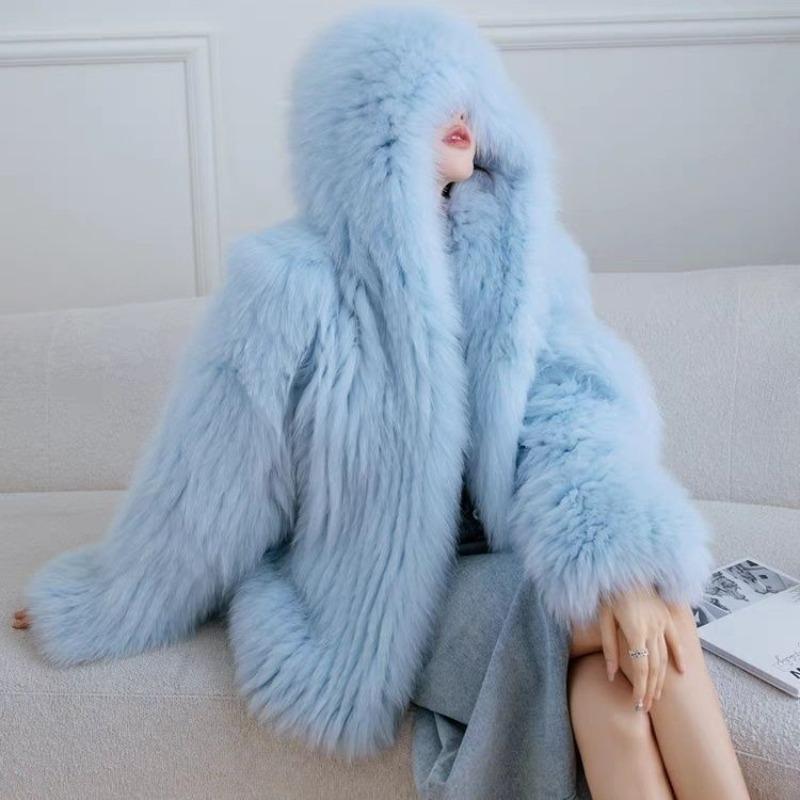 Pelz Damenbekleidung Imitation Fuchs Pelzjacke mit Kapuze Kunstpelz gewebter Pelz Oberteil Herbst- und Winterbekleidung