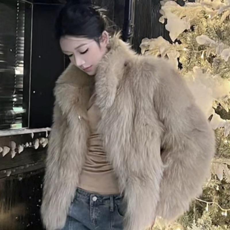 Stand-up collar imitation fur jacket short fashion imitation fox fur top plush women's winter clothing fashionable and simple trend