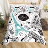 Paris Bettbezug-Set Queen Size Eiffelturm Bettwäsche-Set Mädchen Schwarz und Rosa Paris Deckenbezug Romantischer Französischer Bettdeckenbezug