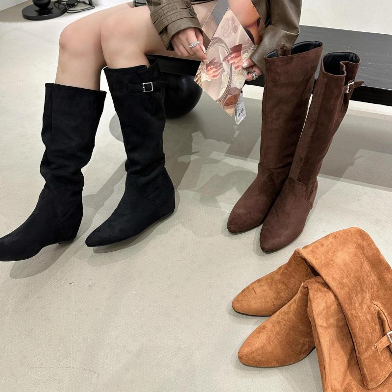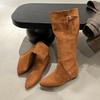 Innere Erhöhung Französische Retro Wildleder Spitzstiefel Damenstiefel 2025 neu Herbst und Winter Schaftstapel Ritterstiefel