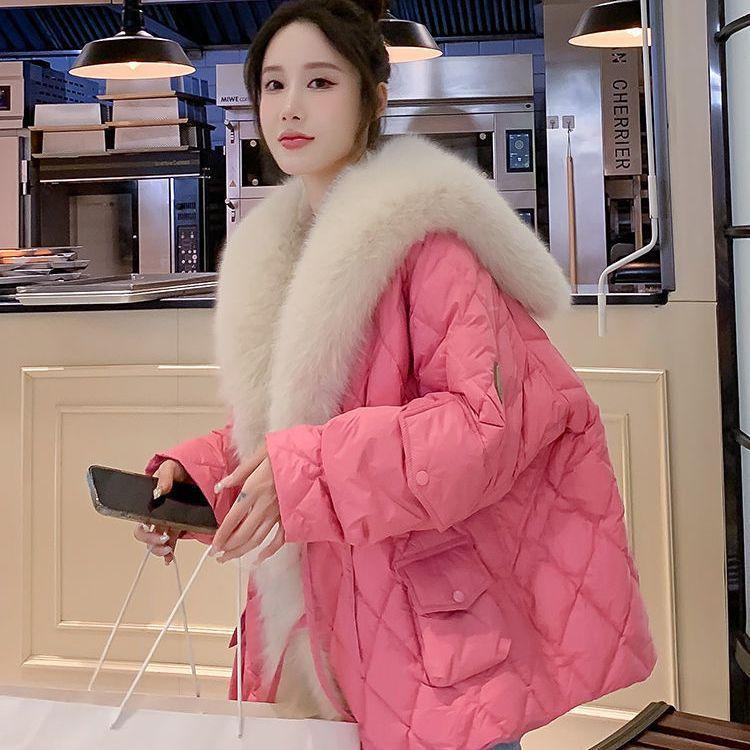 New imitation fox fur navy collar down cotton jacket wool cotton clothing women's medium and long autumn and winter clothing