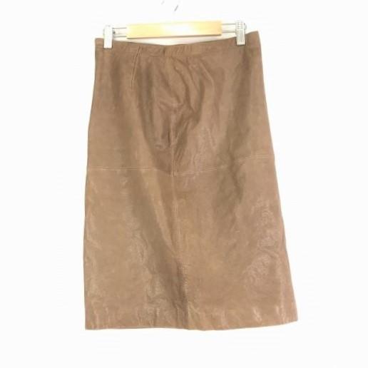 Whim Gazette ★ Sheepskin/Knee-Length Leather Tight Skirt [Size 36/S/Brown] BF566
