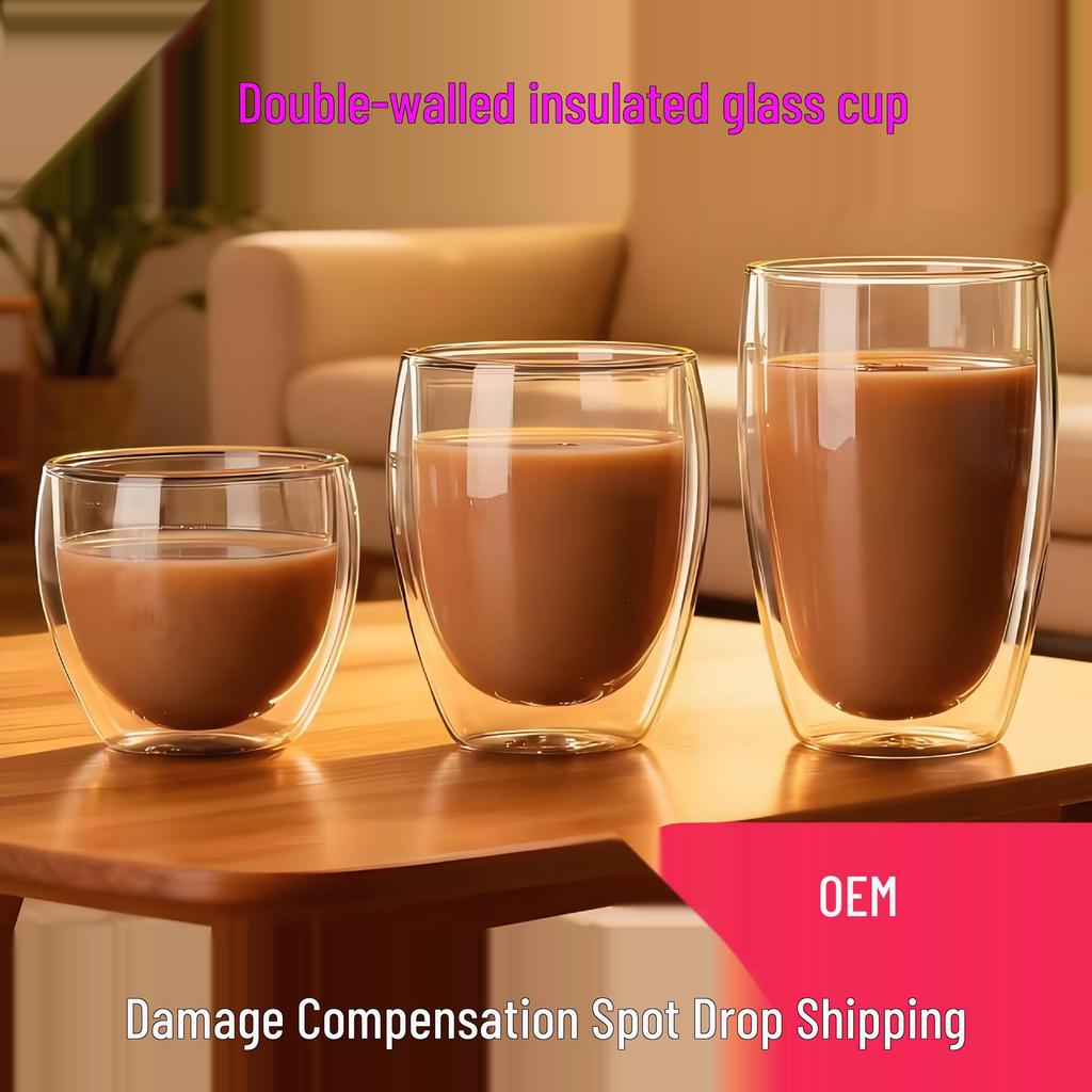 Transparente doppelwandige Borosilikatglastasse für Tee, Milch, Saft oder Kaffee - Modisches und minimalistisches Design