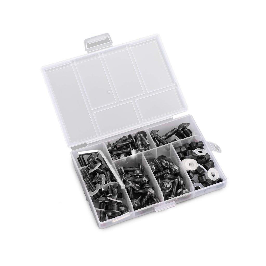 VIPIH 158 Stück Motorrad Sportbike Windschutzscheibe Verkleidung Schraubensatz Befestigungsklammer Schraubensatz Schwarz