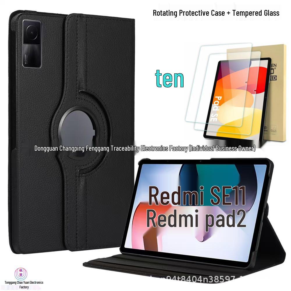 Rote, rotierende Schutzhülle mit Litschi-Muster für Xiaomi SE 11-Zoll-Tablet - Vollständige Abdeckung, Anti-Sturz-Ständer für Redmipad2