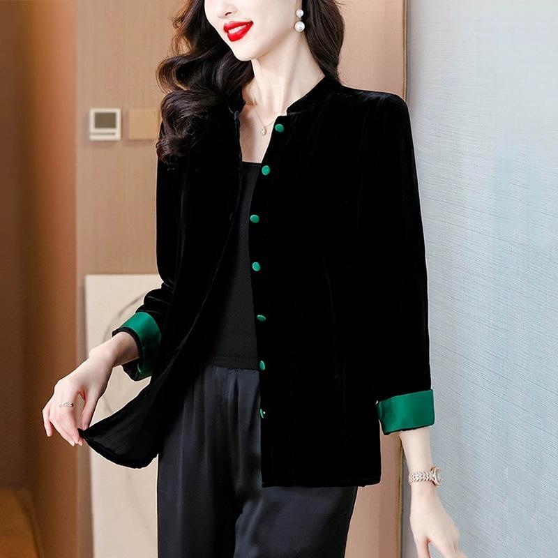 Entdecken Sie Eleganz und Komfort mit diesem exquisiten schwarzen Samtmantel im neuen chinesischen Stil.. Perfekt für Frühling und Herbst, kombiniert dieser locker sitzende Cardigan Tradition mit modernen Trends. Gefertigt aus hochwertigem Polyester, verfügt es über lange Ärmel und einen anspruchsvollen Stehkragen, was es zu einer ausgezeichneten Wahl für jeden Anlass macht.. Speziell für Frauen maßgeschneidert, wertet dieser Mantel Ihre Garderobe mit seinem zeitlosen Reiz und luxuriösen Gefühl elegant auf.