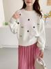 Damen Herbst/Winter Locker Gestrickter Pullover mit Blumenstickerei - Koreanischer Retro-Stil
