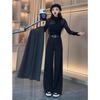 Women's Wool Wide-Leg Pants: Spring/Fall Loose Fit, Straight-Leg, Slimming Pockets with Velvet for Winter.