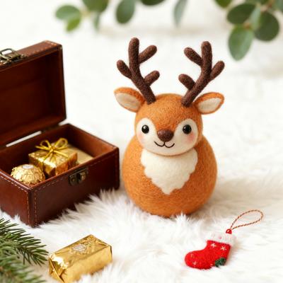 Filz Rentier Figur Handgemacht Elch Weihnachtsdekoration Niedliche Kleine Wollfilz Handarbeiten für Winterferien Etagere Heimtischdeko