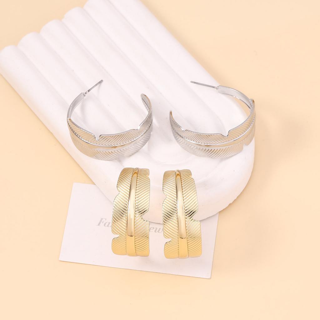 The Baroque light luxury style high-end circular C-shaped leaf-shaped stud earrings have a unique and niche design sense