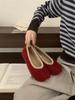 Retro rote einpedalige flachsohlige flauschige Schuhe für Damen zum Tragen im Herbst und Winter warme Samt-Beanie-Schuhe mit Zehentrenner Schweinsfüße Baumwollschuhe