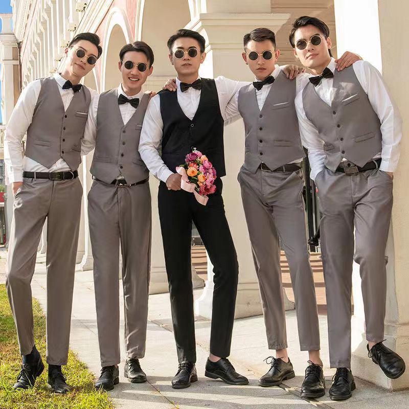 Westlicher Trauzeugen-Westenanzug: Dreiteiliges Set mit Hemd und Anzug, perfekt für Herbst-/Winterhochzeiten.
