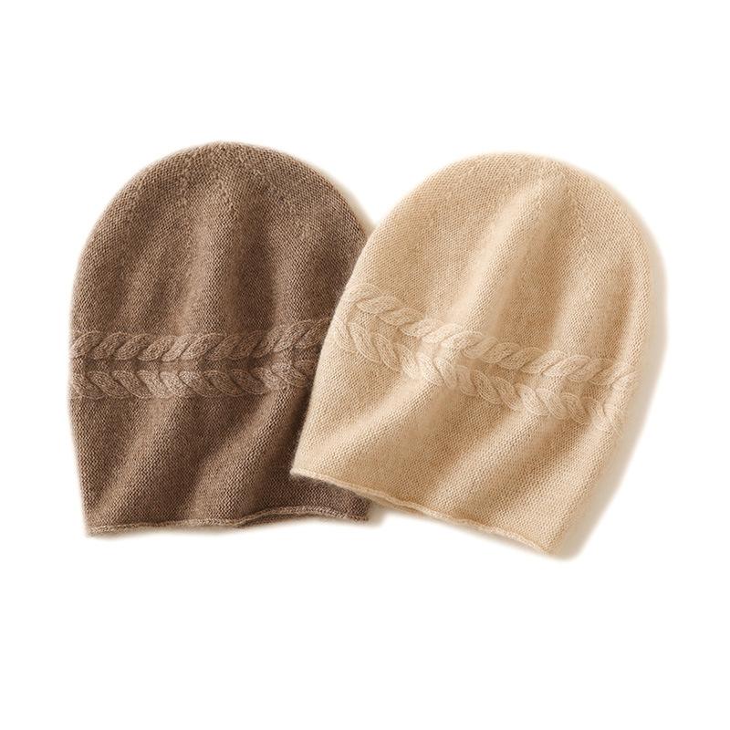 Kaschmir Herbst und Winter Neuer Stil Damen Hochwertig Einfarbig Zopfmuster Verdickt Warm Mode Gestrickte Freizeitmütze