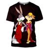 Damen Herren Sommer Atmungsaktiv Bequem Elastisch Plus Anime Hase Bedrucktes T-Shirt Weiches Mittleres Stretch Polyestergewebe Sommer Locker Geschnittene Kleidung