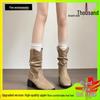 Herbst/Winter 2025 Retro-Stil Mid-Calf Wildleder Geraffte Cowboy-Stiefel