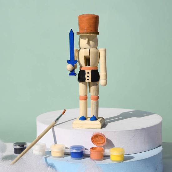Yousheng Unpainted Nutcracker Soldier Wooden Soldier Ornament DIY Painting Nutcracker Soldier Figurine for Christmas Decoration Holiday Gift