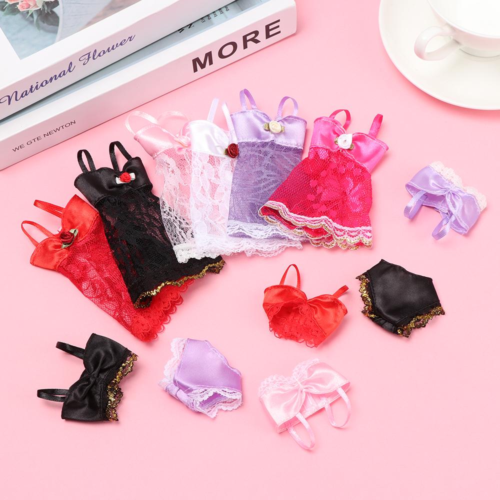 3PCS/Set Puppenrock Spitze Nachtkleid BH Unterwäsche 3 in 1 Kleidungsset Sexy Pyjama Lingerie Puppenzubehör Babypuppen Spielzeug
