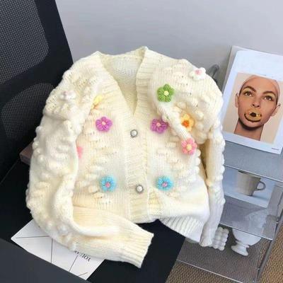 Blumen Damen Strickjacke Rundhals Perlenknopfleiste Süße Pullover Herbst Locker Frau Neue Mode Langarm Oberteil