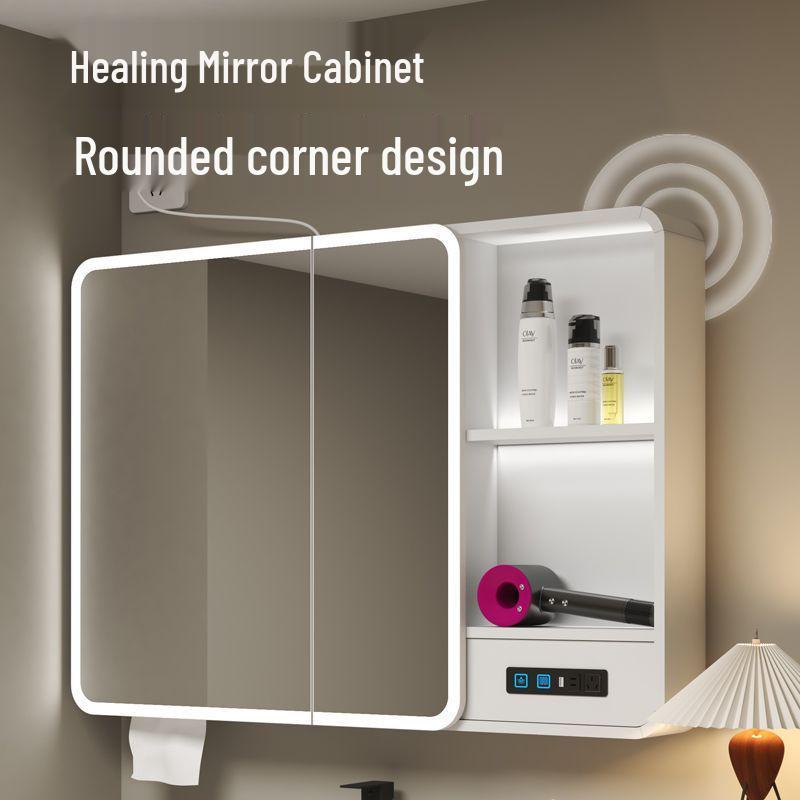 Arc Thickened Bathroom Smart Mirror Cabinet with Makeup Storage and Wall-Mounted Multi-Function Socket