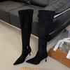 Temperament Hohe Stiefel Herbst Neu Spitzzehe Wildleder Seitlicher Reißverschluss Rutschfest Abriebfest Schlank Mitzieher-Stiefel