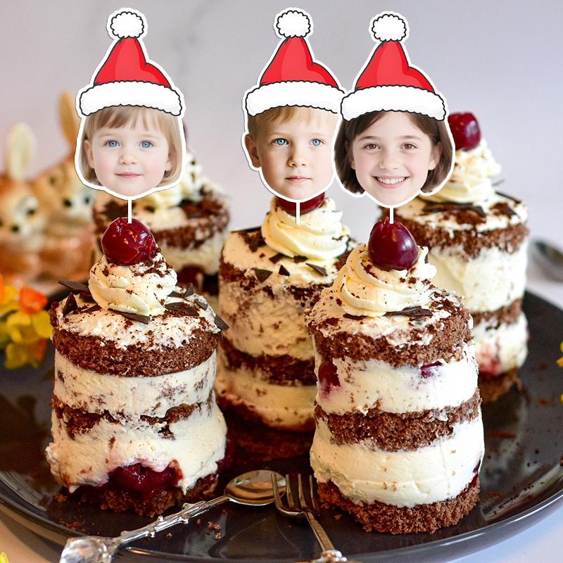 Individuelle Weihnachtspapieraufkleber-Banner Kuchenaufsätze Personalisierte Gesichter mit Weihnachtsmütze Aufhänger Geschenketikett Neujahrsparty Zubehör