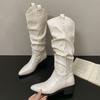 Winter Kuschelig Weiches Leder Plissierte Damen Kniehohe Stiefel Mode Dicke Absätze Partyschuhe Britischer Stil Ritter Lange Stiefeletten Schuhe