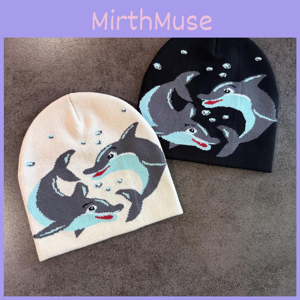 Knit Hat Acrylic With Cartoon Dolphin Embroidery Design For Daily Seasons Cold