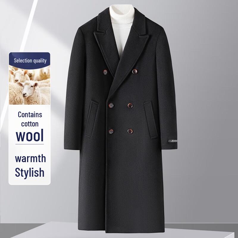 FAPAI.EC Herren Zweireihiger Wollmischmantel