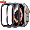 2 Stück gehärtetes Glas für Apple Watch Ultra 49mm Titan Metallrahmen Kratzschutzfolie Serie Ultra 2 Displayschutz Zubehör