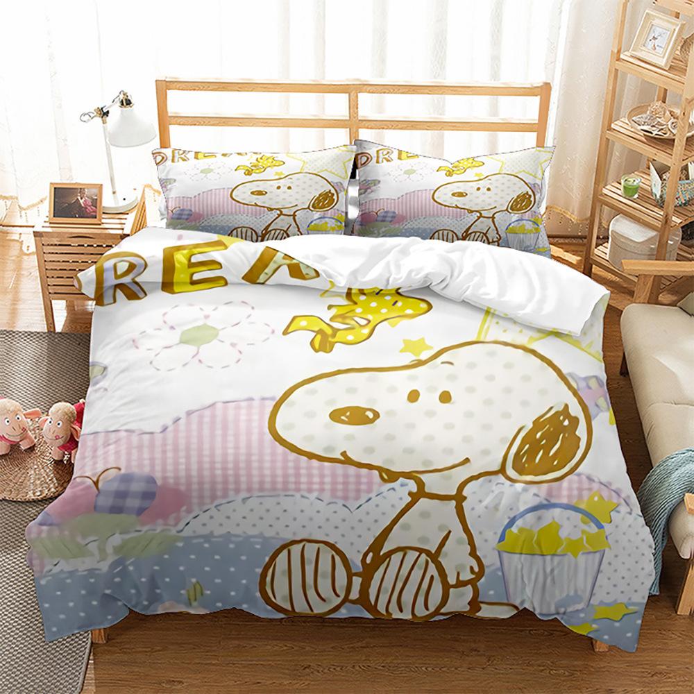 Snoopy-Motiv, digital bedruckter Bettbezug, Kissenbezug, dreiteiliges Bettwäscheset
