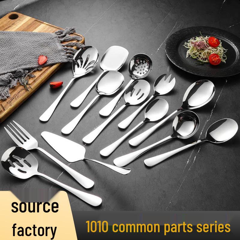 Edelstahl Suppenkelle & Geschlitzter Salatlöffel Gabel Set für Westliche Küche und Hotelgebrauch