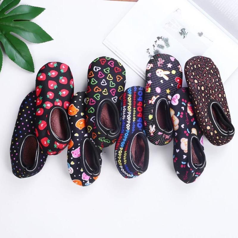 Damen Hausschuhe für den Boden Indoor Kurze Socken Elastisch Bedruckt Warm Verdicken Fleecegefüttert Bodensocken Rutschfeste Socke