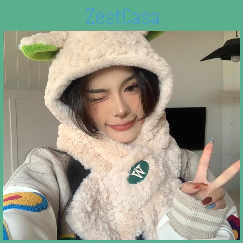 Cute Lamb Design Plush Hat And Scarf For Women Warm Winter Accessory
