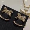 Champagner-Gold Strass-Schleifenohrringe - High-End Leichter Luxus Silber Vintage Mode für Damen