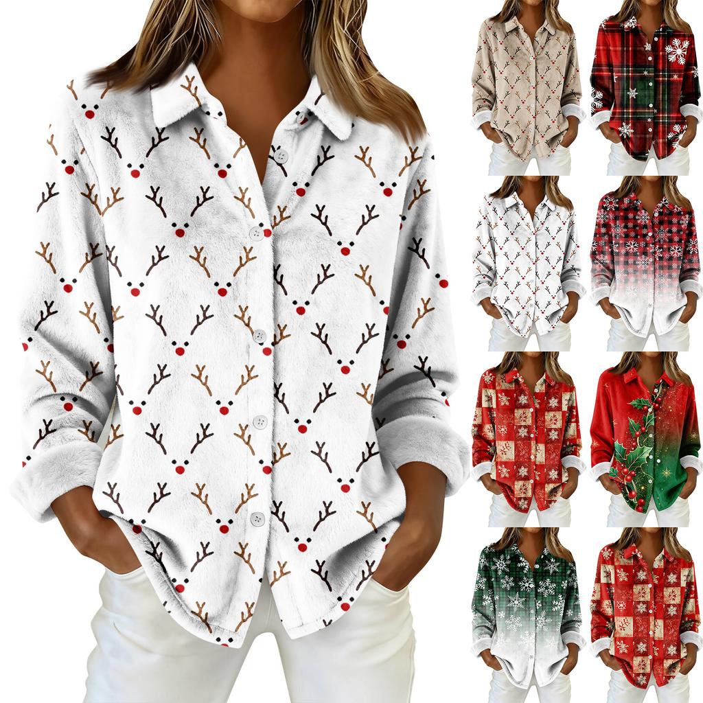 Damen-Hemdbluse, bedruckt, Knopfleiste, langärmelig, lässig, Basic, Hemdkragen, normales Oberteil