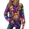 Damenmode Locker Langarm Karnevals-Print Rundhals Casual Oberteil