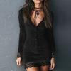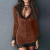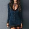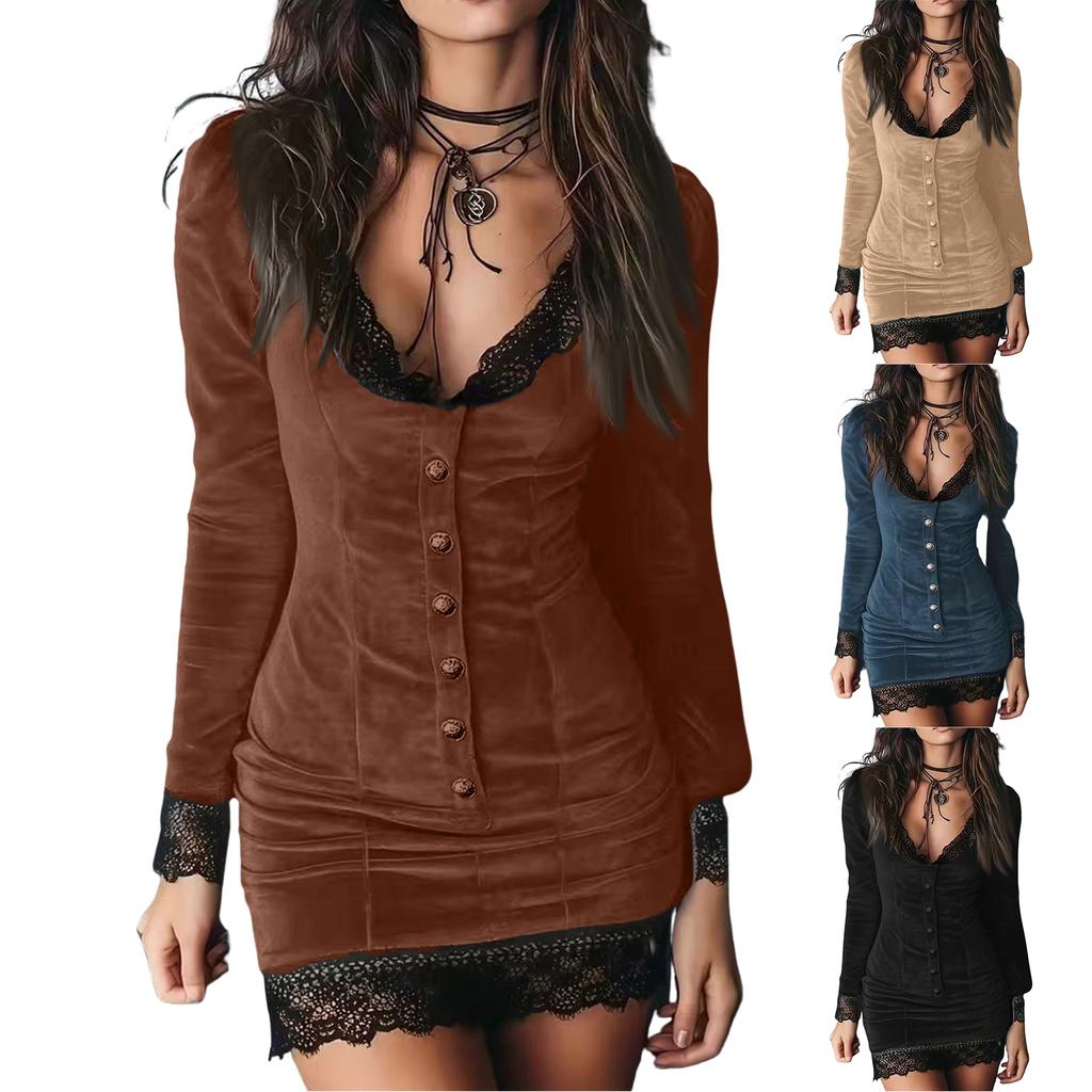 Damen Retro Samt Spitzenbesetztes Knopf Clubkleid