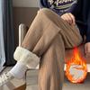 Winter Damen Koreanische Mode Hohe Taille Fleecehose Damen Slim Fit Gerades Bein Plüschhose Mädchen Schnee Warm Freizeithose