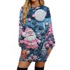Damenmode Lässig Weihnachts-Print Rundhals Langarm Kleid