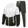 Herren Lässiges Farbblockiertes Leichtes Sportbekleidungsset, Herren Sportbekleidungsjacke mit Reißverschluss und Kapuze und Hosen-Set