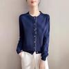 Introducing a chic addition to your autumn and winter wardrobe: this Women's Round Neck Long Sleeve Patchwork Cardigan. Crafted from soft and cozy andy velvet, this cardigan is designed with a solid pattern and a sleek, slim fit to flatter your silhouette. Despite its plush texture, the cardigan maintains a thin thickness, making it an ideal layering piece. The round neckline adds a classic touch, while the long sleeves provide warmth. Detailed with intricate knitted decoration, this cardigan combines elegance and comfort for your seasonal style.