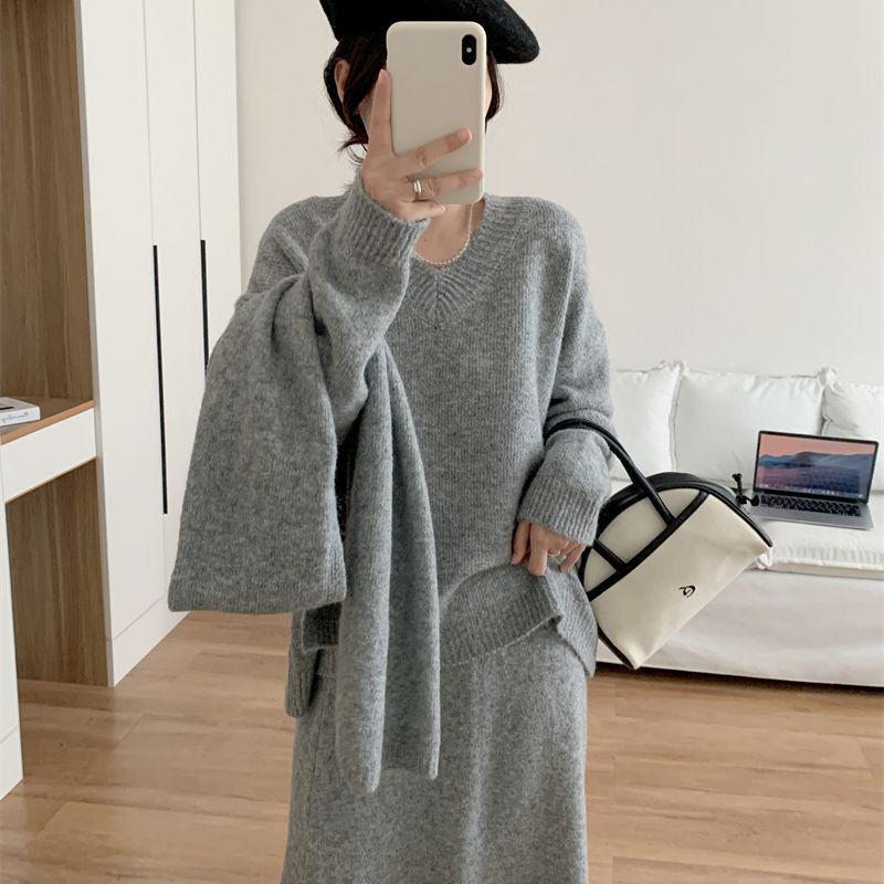 Strick-Zweiteiler in Übergröße: Weicher Bauchweg-Midirock & Top für Herbst/Winter
