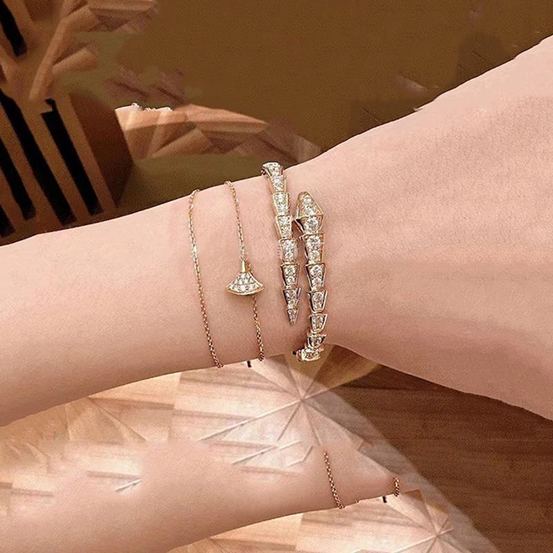 Luxuriöses 18 Karat Roségold-plattiertes Schlangenknochen-Armreif mit Diamanten für Damen