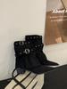 Koreanische Version Gürtelschnalle, Weidennägel, dicke Absätze, Hosen, Stiefeletten, Damen Herbst- und Wintermodelle, trendige und coole Nischendesign-Hose