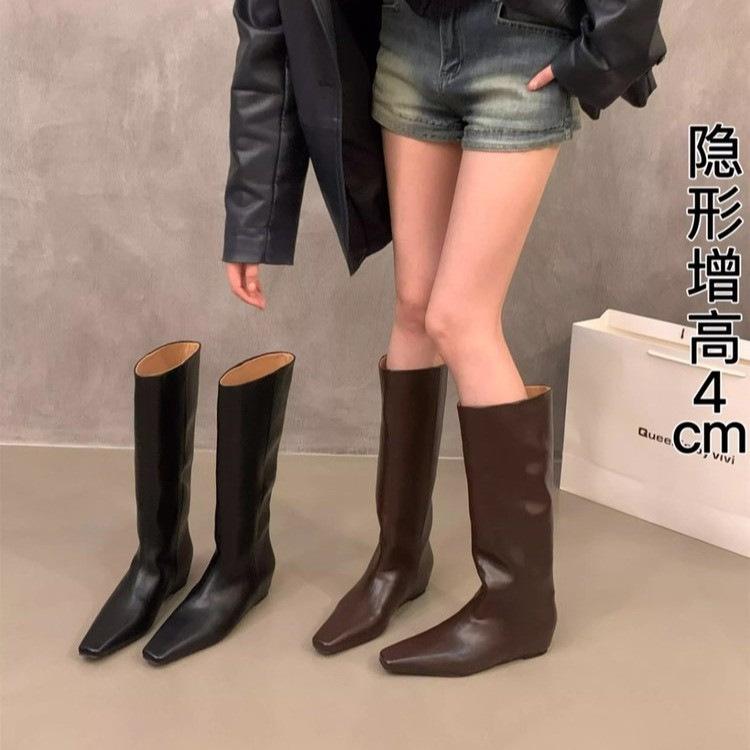 Ruodan! Spitze braune Maillard Mid-Tube Ritterstiefel Damenschuhe 2025 neue Frühling Herbst Winterstiefel