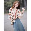 Damen Bunter Gestreifter Häkelpullover - Lockerer, Trendiger Stricktop für Frühling/Sommer