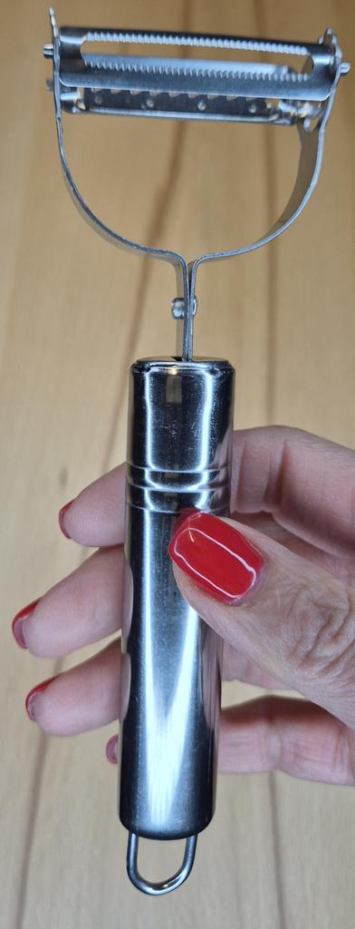 👩🍳 Ich erhielt den Gemüseschäler aus Stahl nach drei Lieferwochen bestens verpackt und konsolidiert in Österreich zugestellt. 👩🍳 Dieser Schäler eignet sich hervorragend, um Obst oder Gemüse sowohl in Streifen als auch in Bahnen zu schälen, bzw zu schneiden. 👩🍳 Das Produkt scheint qualitativ hochwertig zu sein und liegt sehr gut in der Hand. Ich bin absolut begeistert und empfehle den Schäler sehr gerne weiter 👍! 🎶 Musik von Capcut pro