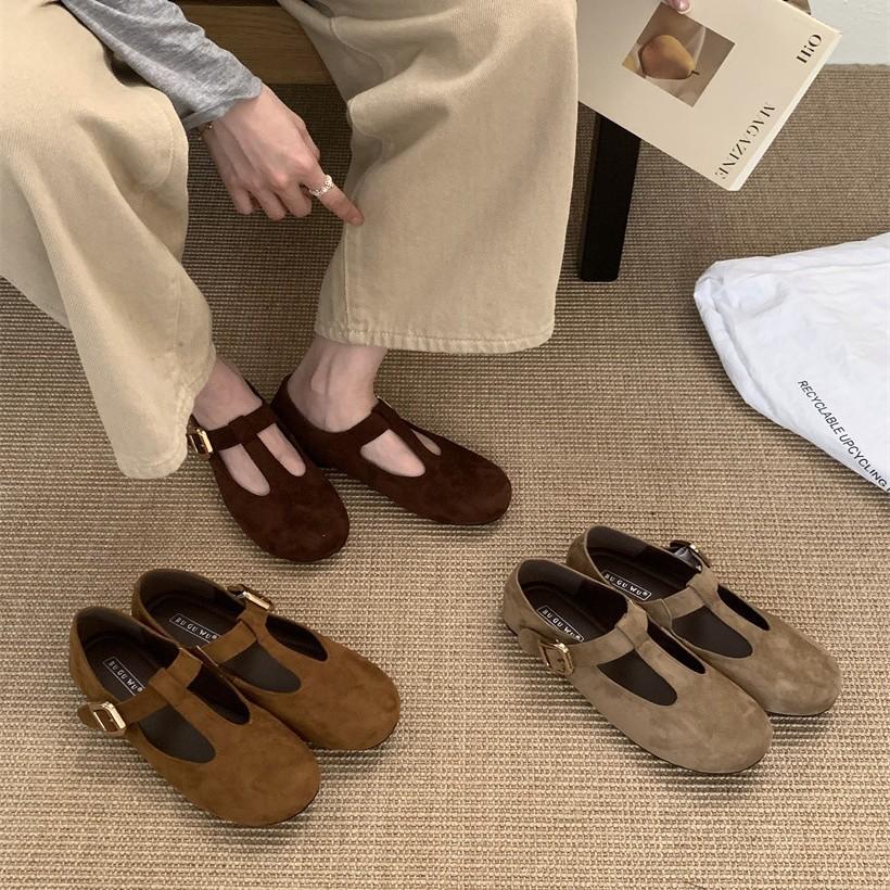 Retro flat-bottomed Mary Jane shoes for women's 2025 summer new round head versatile comfortable soft sole T-buckle strap single shoe trend